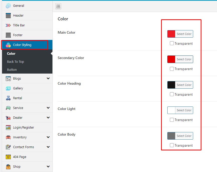 4. Color Styling - Select the primary color, button color, hover color for items in your website.